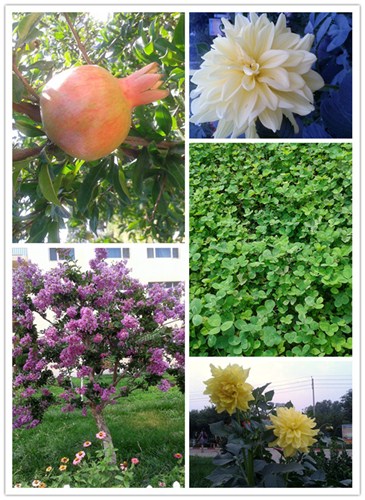 公路边的花儿由春天开得富丽堂皇的牡丹,到由夏开到秋,开得豪放的步步登高花,以及盘爬画廊上的葡萄架,硕果累累的石榴树、长满枝头的柿子树,都忍不住让人驻足欣赏一番;围绕公司走一圈,被那树、那花、那草簇拥着,心里有无以言说的喜悦!