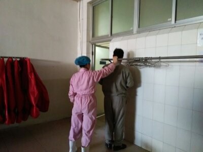 老王师傅先把牌子卸下来,将螺丝钉一一收起来装进口袋,这些个还能用。趁我收拾的空儿,他又将其他用具准备妥当,待牛海波工程师给插好电,老王师傅便自顾自的干起来。钻眼、钉木头、拧螺丝一切按部就班,我在下边帮托着牌子。每个牌子拧上螺丝后,老王师傅便后退步看看歪不歪。牌子间竖穿过一根套线管,两边的牌子跟管的距离都要一样宽。我由衷的夸了一句:老王师傅,您干活可真仔细。“干活就得这样” 老王师傅“没领情”,“特别给厂务干活,更得仔细,别让领导‘批你’,哈哈”。老王师傅幽默的损了我一下,却感动的我一塌糊涂。