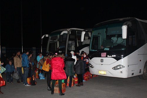 300多名员工在公司安排的包车下安全顺利地到达家乡,让每位员工都能及时与亲人团聚,过一个幸福快乐的春节。这次员工返乡又一次体现了公司对员工的重视和温馨的关怀!