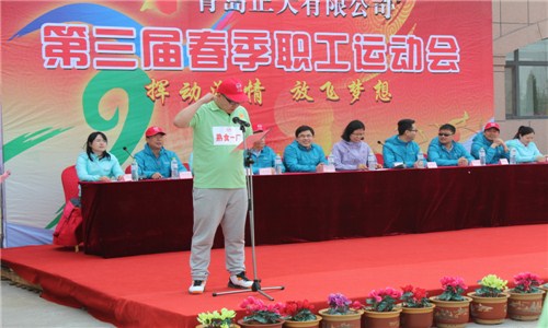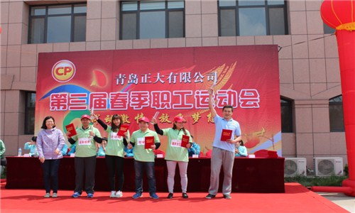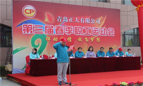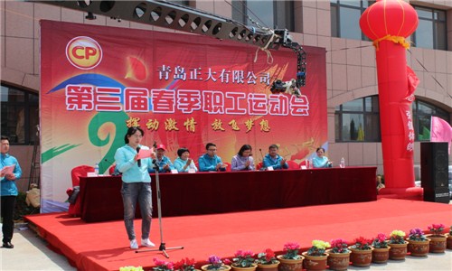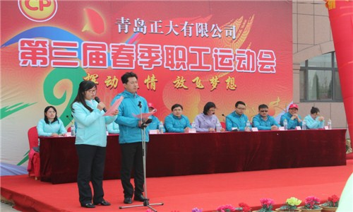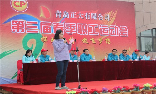 2016年4月18日,在春意盎然,樱花盛开的日子里,青岛正大有限公司第三届春季职工运动会在公司厂区内隆重举行。青岛正大有限公司总裁刘风科女士,研发中心助理副总裁樊凌翔先生,销售部总经理于宗明先生,设备部总经理卞耀佳先生,品质总监张晓云女士,饲料事业部总经理朱铨先生,种禽事业部总经理孙玉喜先生,采购及行政总监庄雪琴女士,安全部副总经理田立文先生,食品加工厂副总经理宋淑美女士出席了本次运动会开幕式。本次运动会由仓储部经理李海波先生与食品二厂厂长吴然女士共同主持,在雄壮的运动员进行曲中,裁判员和运动健儿们迈着矫健的步伐入场,刘风科总裁致热情洋溢的开幕词,并宣布本次运动会正式开始。