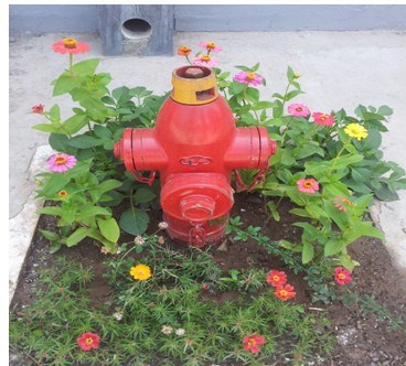 仓储部办公室门口有一个约0.64平方米的消防栓池,里面只有一个消防栓孤零零的立着,为了让消防池生动起来,我们决定栽点花儿。